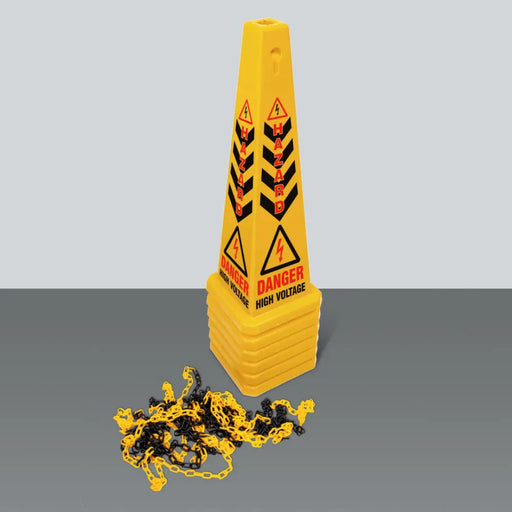 ProsolWarning Bollard – 6 Cone Kit with Barrier Chain. High visibility conical warning bollards to alert of the high voltage hazard presented by Hybrid o...