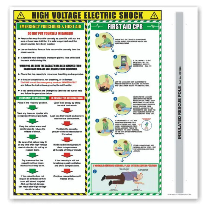 Designed by Prosol, the panel incorporates electric shock safety advice information and CPR instruction.