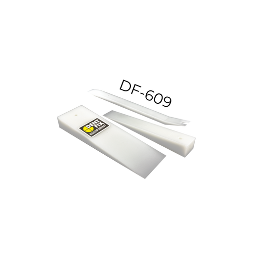 L'ensemble de cales utilitaires DF-609 vient d'Allemagne et est fabriqué à partir de nylon de haute qualité. L'ensemble comprend une cale de 30 mm, une cale de 60 mm et un outil de démontage. Cet outil polyvalent n'endommage pas les plastiques souples, ne raye pas la peinture ou le verre.