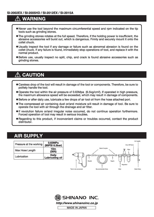 - Avg.Air Consumption, CFM/(L/S): 4.0/(1.9)